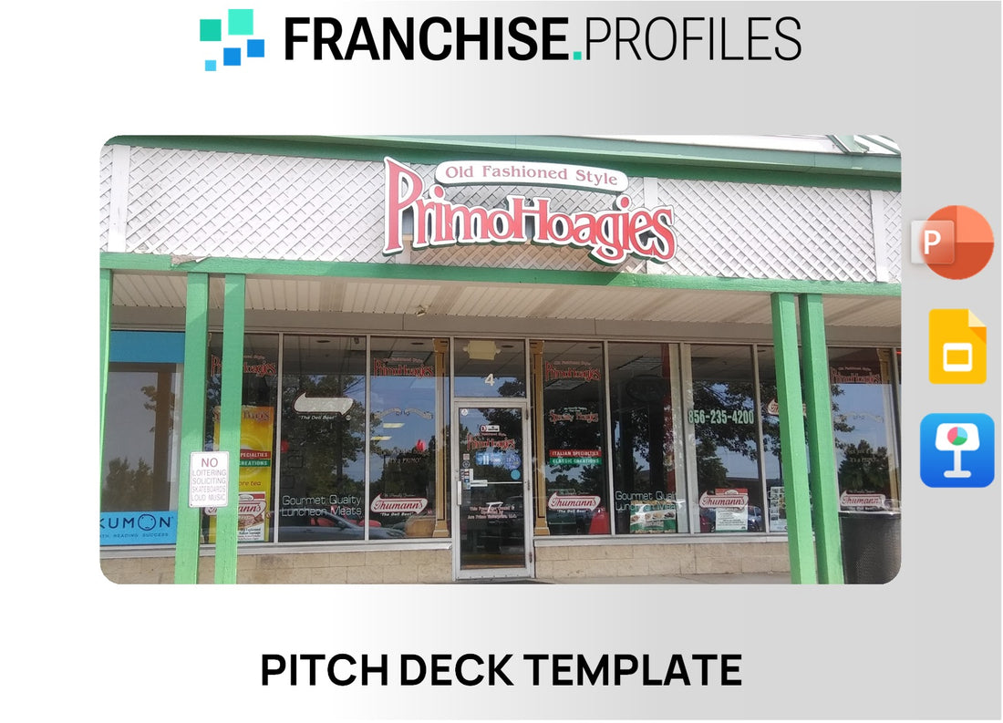 This Pitch Deck Template for PrimoHoagies Franchise offers a clear Franchise Investment Presentation, ideal for a fast casual Hoagies opportunity.