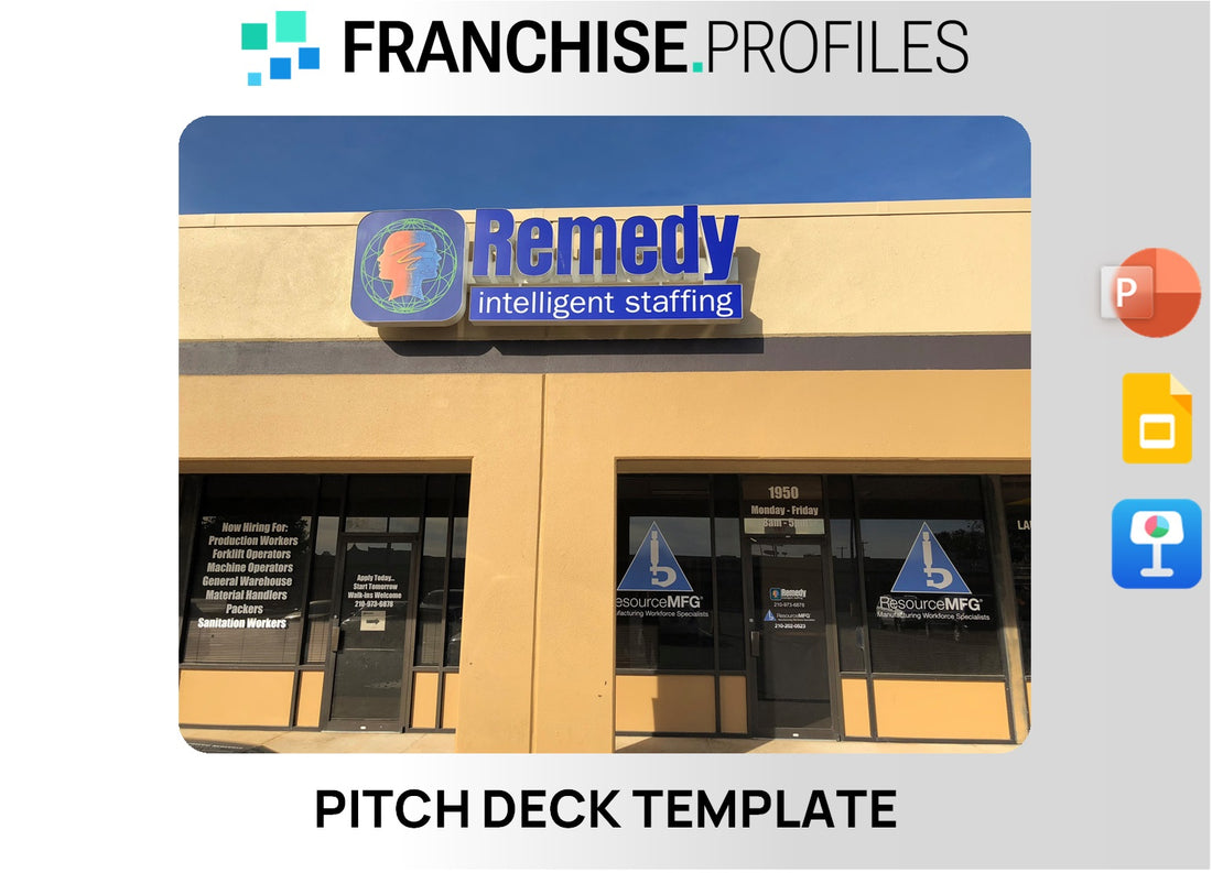 Our Franchise Pitch Deck Template empowers this Remedy Intelligent Staffing Franchise with intelligent staffing solutions and growth focus.